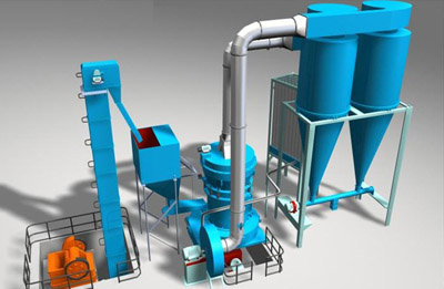 物料研磨后的細(xì)粉隨鼓風(fēng)機(jī)的循環(huán)風(fēng)被帶入分析機(jī)進(jìn)行分選,細(xì)度過粗的物料落回重磨,合格細(xì)粉則隨氣流進(jìn)入成品旋風(fēng)集粉器,經(jīng)出粉管排出,即為成品。在磨室內(nèi)因被磨物料中有一定的水分, 研磨時生熱,水氣蒸發(fā),以及整機(jī)各管道接口不嚴(yán)密,外界氣體被吸入,使循環(huán)氣壓增高,保證磨機(jī)在負(fù)壓狀態(tài)下工作,所增加的氣流量通過余風(fēng)管排入除塵器,被凈化后排入大氣。
